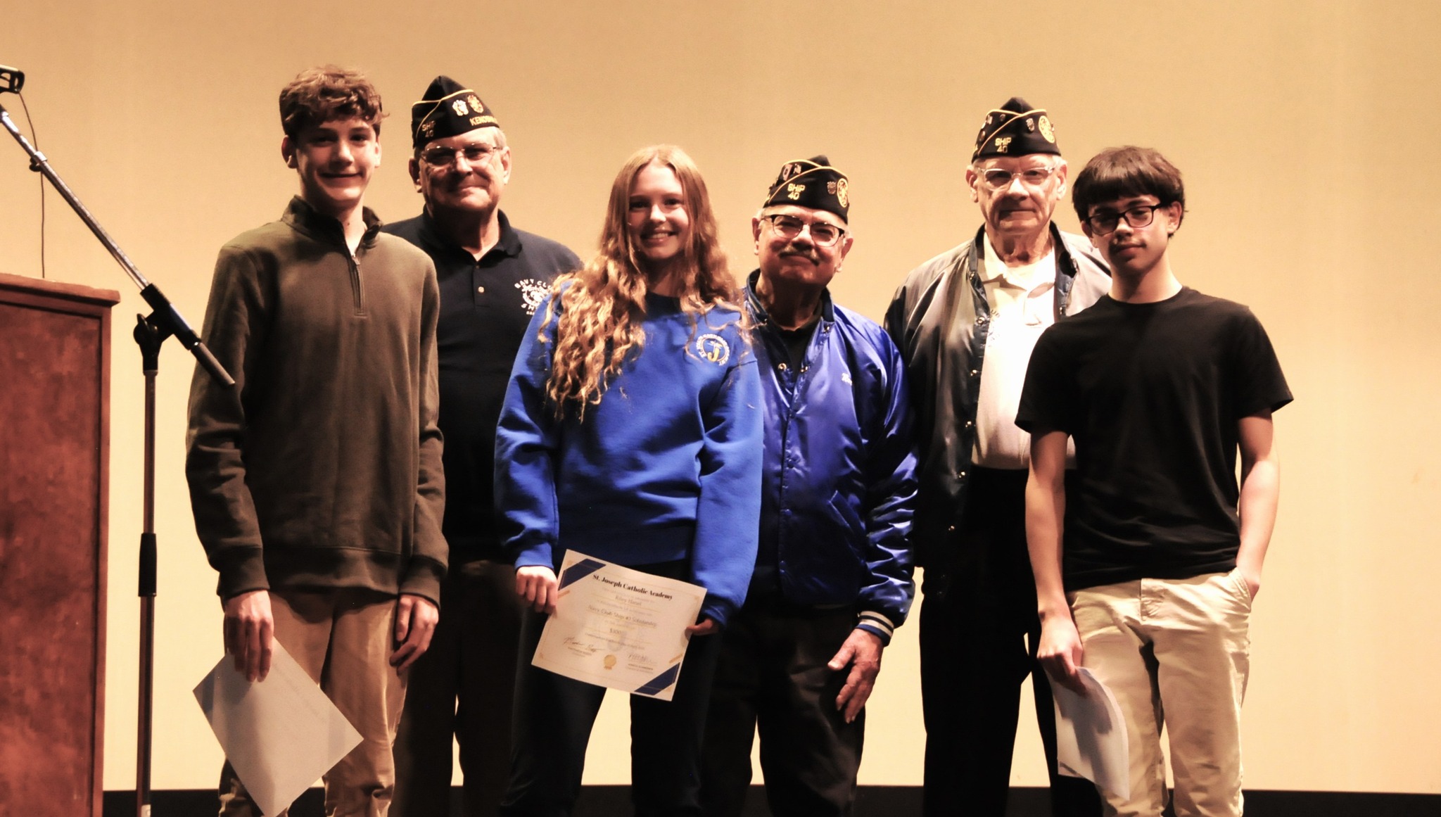 On Thursday evening, April 10, 2025, three scholarships in the amounts of $500, $300, and $200 were presented to students who attend St. Joseph Catholic Academy in Kenosha, Wisconsin at their Scholarship Awards Ceremony. Presenting the awards on behalf of the Navy Club of Kenosha-Ship 40 were Commander James Zeszutek, Junior Executive Officer, Ron Abrahamson and Paymaster, Donald Burns from the Navy Club.